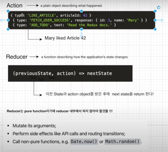 : STORE에서 object(객체) 형식의 ACTION만 받는 것이 원칙.