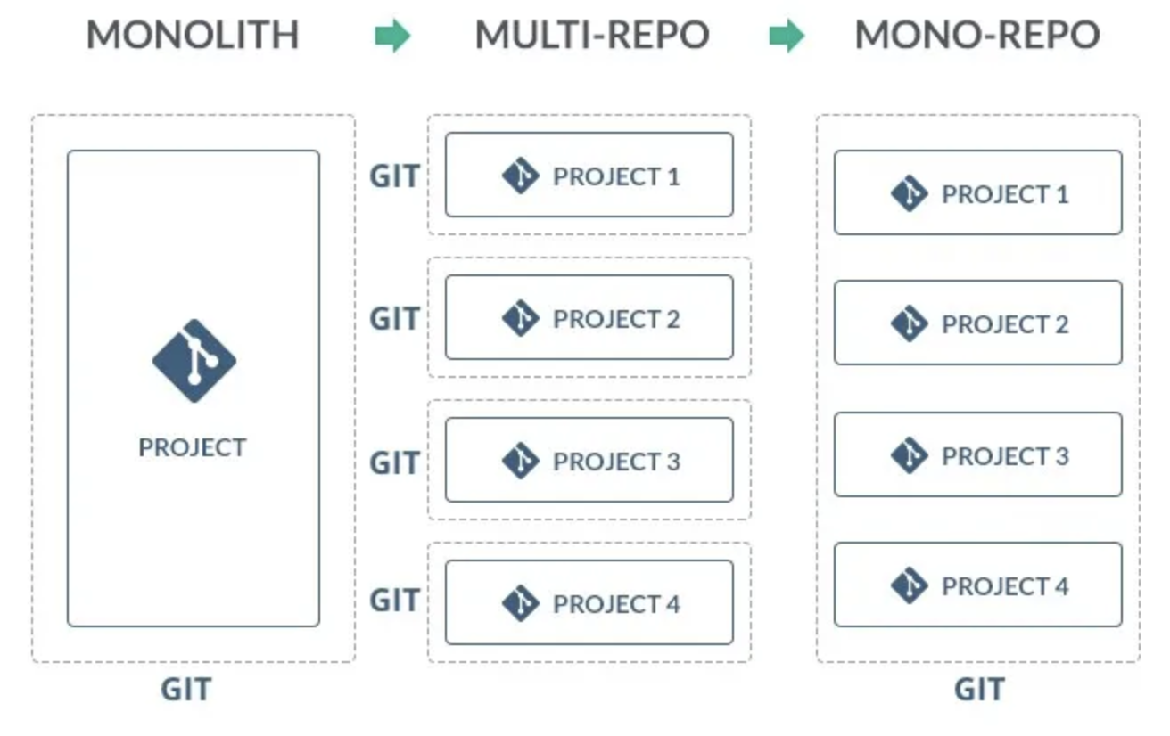 하지만 관리할 프로젝트가 많아질수록 단점이 발생합니다. 프로젝트별로 사용하는 모듈과 버전 스택이 달라질 수 있고요. 오랫동안 건드리지 않은 프로젝트는 관리가 힘들어지고, 레거시 파악이 어려워집니다. 또한 새로운 레파지토리를 생성할 때마다 동일한 서비스 환경과 린트 환경을 반복적으로 셋팅해줘야 합니다.